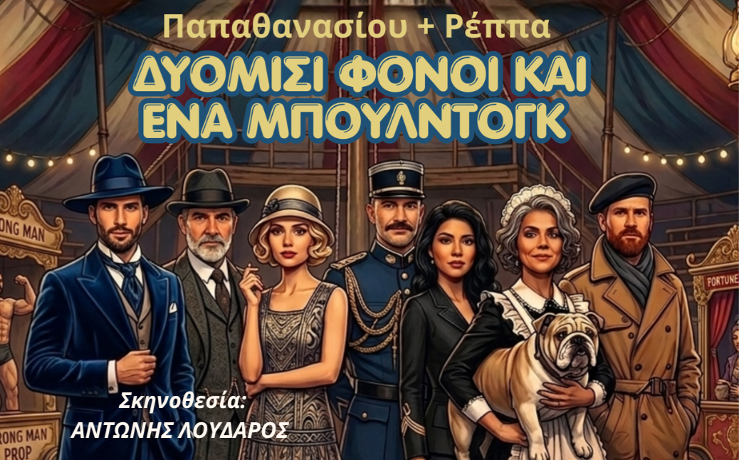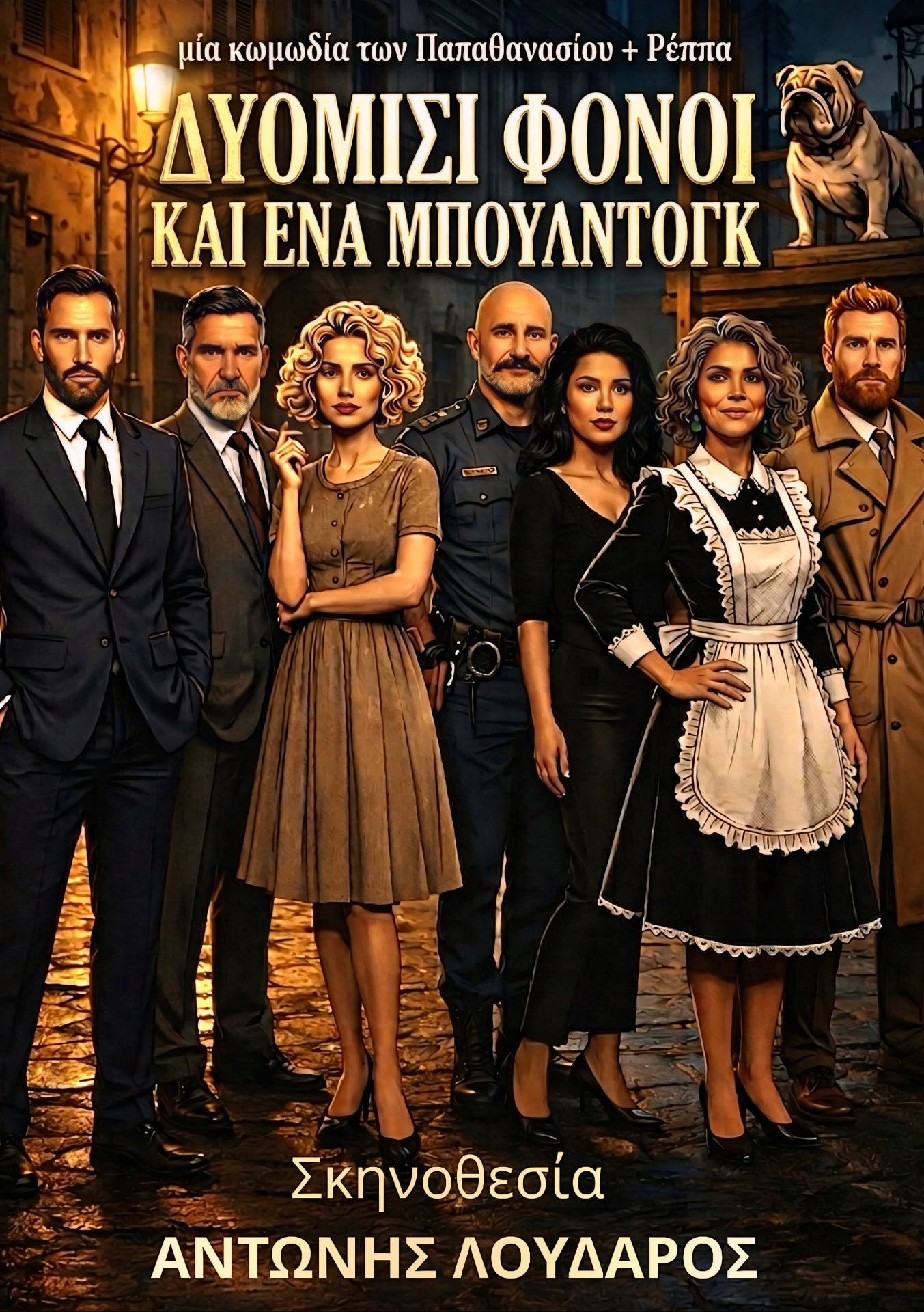"Δυόμισι Φόνοι και ένα Μπουλντόγκ" Πρεμιέρα: Παρασκευή 10 και Σάββατο 11 Ιουνίου στο ανοικτό θέατρο Μίκης Θεοδωράκης (πρώην πύλη Βηθλεέμ) ωρα έναρξης: 21:15